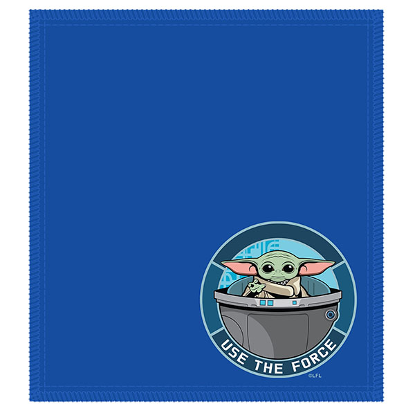 Star Wars character Grogu, AKA Baby Yoda, is featured on this blue bowling ball shammy pad.