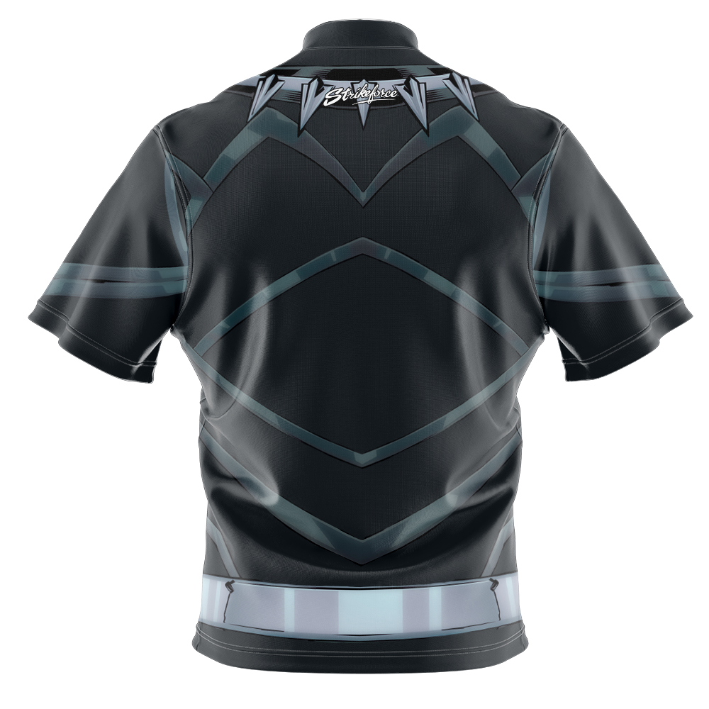 This high-tech Marvel jersey is durable and made from moisture-wicking fabric. It has a sash collar with a 3/4 zip front. The colorful design is dye-sublimated. The jersey is washable in cold water. For best results, not use bleach or fabric softener, air dry. Do not use abrasives to clean the shirt, as they may snag the fabric. The jersey is proudly made in the USA. See chart below for sizing information.