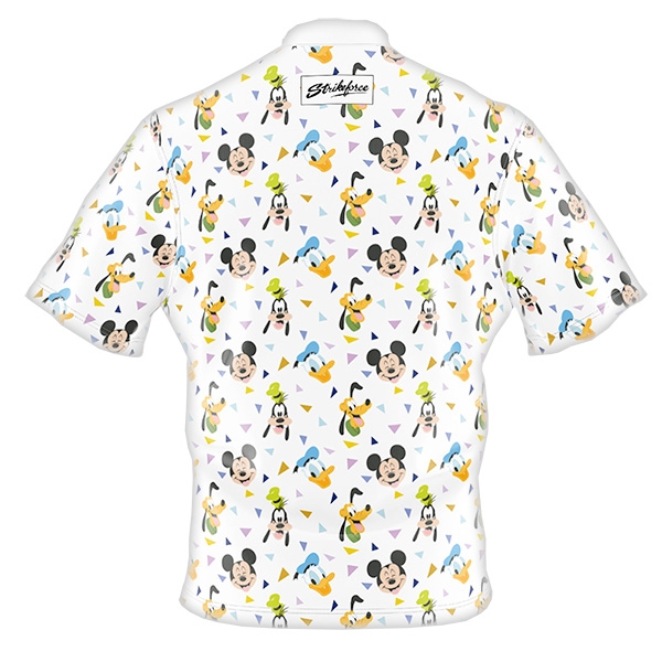This high-tech Disney jersey is durable and made from moisture-wicking fabric. It has a sash collar with a 3/4 zip front. The colorful design is dye-sublimated. The jersey is washable in cold water. For best results, not use bleach or fabric softener, air dry. Do not use abrasives to clean the shirt, as they may snag the fabric. The jersey is proudly made in the USA. See chart below for sizing information.